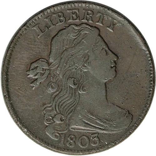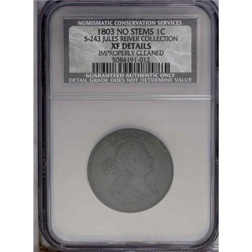 1803 1C No Stems XF40--Improperly Cleaned--NCS. XF Det 1803[1C] No Stems. S-243, B-1, R.2--Improperl