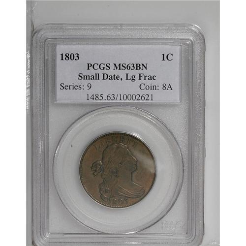 1803 1C Small Date, Large Fraction MS63 Brown PCGS. S-
