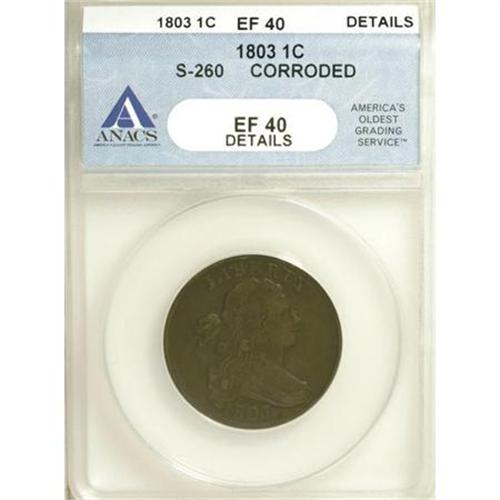 <B>1803 1C --Corroded--ANACS. XF40 Details.</B></I> S-260. NGC Census: (0/0). PCGS Population (0/1). (#36404)<BR><BR><b>Shipping:</b> Coins & Currency (<a target="_blank" href="http://www.heritageauctions.com/common/shipping.php">view shipping information</a>)