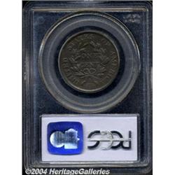 <B>1803<1C> Small Date, Small Fraction AU53 PCGS.</B></I> S-252, R-3. Liberty's cheek and shoulder have only a whisper of friction. Boldly struck except for the leaves below the T in CENT. This medium brown example would be a highlight of an advanced collection of Draped Bust Cents. A pair of faint pinscratches approach on Liberty's lower neck, and a shallow planchet flaw (as made) is encountered below the hair ribbon. The upper reverse features three sets of bold clashmarks, as made. <BR><BR><B>Important notice:</B> Heritage usually auctions material at the rate of 200-250 lots per hour. On some occasions eBay Live bid software or the Internet may not be able to keep up with the pace of the auction. We recommend placing a realistic absentee bid now as insurance to avoid disappointment. Occasionally the auctioneer may eliminate or reject an eBay Live bid, and the auctioneer may also reopen a lot after the close of the eBay live bidding (usually because we missed an audience bid), and may reject your bid even if it shows you as the winning bidder. By bidding via eBay Live, you agree that Heritage may award the lot to another bidder at its sole discretion under the circumstances described above or any other reasonable circumstances. Since eBay bids are not shown to us until we open the lot on the floor, we treat those bids just like floor bids. In most cases the floor responds before the eBay bid is presented to us, due to Internet lag time, so for consistency we have made it a policy that floor bids are always considered first over tie eBay live bids. Also please note that all Heritage lots purchased through eBay Live carry a 20% Buyer's Premium. Please make sure you read the Terms and Conditions before you bid. </span></font></tr></table></td></tr></table>