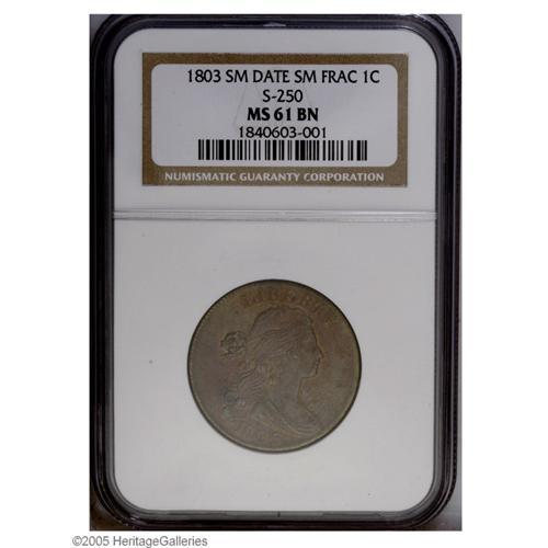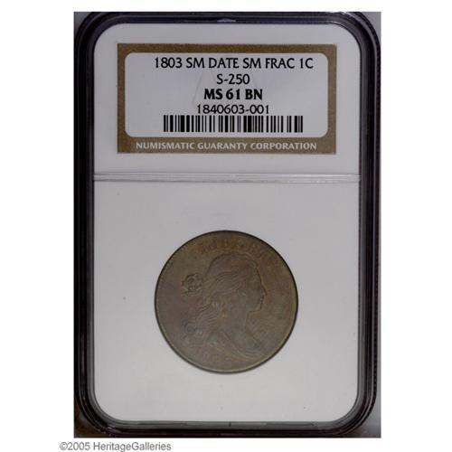 1803 1C Small Date, Small Fraction MS61 Brown NGC. S-2 1803[1C] Small Date, Small Fraction MS61 Brow