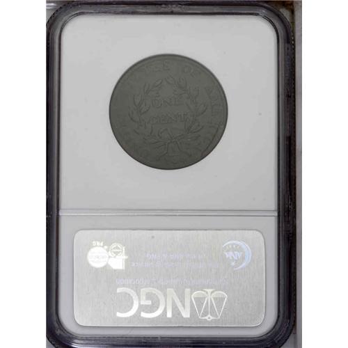 <B>1803<1C> Small Date, Small Fraction. S-245, B-2, R.3. VF20 NGC. Fine 12 EAC.</B></I> Die State III. A rare example of this terminal die state of the so-called "unicorn" variety, with an enormous reverse rim break over RICA. The obverse also has extensive die clash marks near Liberty's neck and bust. The Heritage January 2005 sale of the fabulous Wes Rasmussen Collection of United States Large Cents contained an example of about the same overall quality as the present coin. The Heritage cataloger noted of that coin (with Very Fine details, a scratched obverse and graded Fine 15 by conservative EAC standards), "Few finer examples of this terminal die state are known. The Newcomb plate coin for this die state ... appears to be of lesser quality than this coin." The present coin appears to about equal the Rasmussen coin, with perhaps a bit more circulation wear but with fewer distractions. The glossy dark-brown surfaces appear a bit rough under a glass and show some grade-consistent marks, none of them singularly mentionable or apparent to the naked eye. The die misalignment always found on this rare die state results in weakness at the lower left obverse and upper left reverse. An opportunity for the advanced collector that is unlikely soon to repeat.<BR><I>Ex: Brooklyn Coin (12/8/1969).</B></I> Envelope Included.