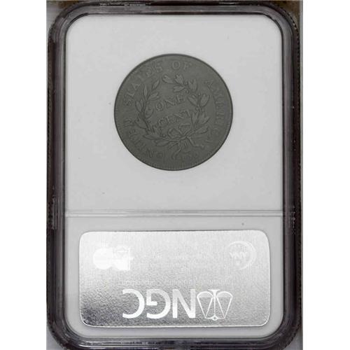 <B>1803<1C> Small Date, Small Fraction. S-251, B-8, R.2. VF30 NGC. VF20 EAC.</B></I> Die State II. The shoulder drape is weak but present on this variety, with the 18 in the date close. In this die state there is a faint bulge at the lowest curl, with several pairs of clash marks evident on the obverse. The present specimen has a severe set of clash marks behind Liberty's hair. On the reverse a planchet flaw, as made, has left a rough area above TE in STATES, and the surface is also a bit rough and pebbly at the date. The color is dark brown. The strike is pleasing on both obverse and reverse, however, and perusal with a glass reveals only a usual quota of grade-consistent nicks and abrasions.<BR><I> Ex: George Ramont (10/23/1969).</B></I>Envelope Included.