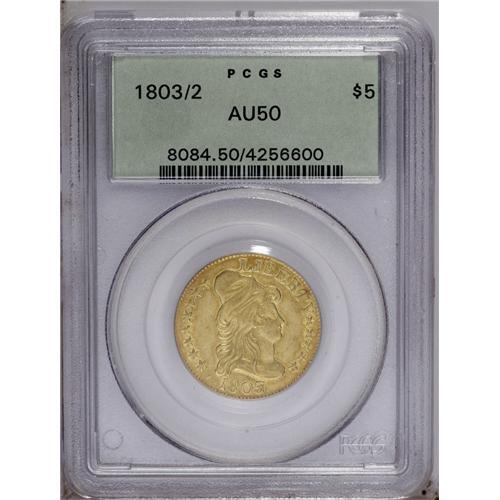 1803/2 $5 AU50 PCGS. Breen-6441, B. 1-C, Miller-56, R. 1803/2[$5] AU50 PCGS.