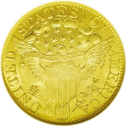 <B>1803/2<$5> MS64 NGC.</B></I> Breen-6441, B. 1-D, Miller-57, R.4. The T in UNITED is widely recut, while the T in LIBERTY has a broken right foot. These two die characteristics confirm this scarce variety. Just as all 1802 half eagles are in fact 1802/1 overdates, all 1803 half eagles are overdated from 1802. The present beautiful pale lime-gold near-Gem has only inconsequential contact, and no adjustment marks are present. The strike is generally sharp, since softness of detail is limited to the fletchings and the leftmost portion of the shield. Early half eagles are the subject of an upcoming reference by John Dannreuther that is likely to make die variety collecting within the series more accessible. Census: 8 in 64, 3 finer (6/06).