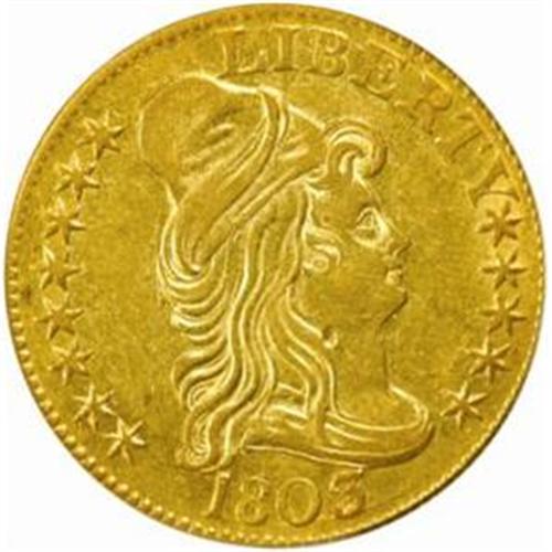 <style type="text/css"> body, td, th { font-family: Arial, Helvetica, sans-serif; font-size: 12px; color: #482424; margin: 0px; padding: 0px; } #header { background-image: url(http://www.bowersandmerena.com/ebay/images/template_v3_01.gif); clear: both; background-color: #590303; border-top-width: 2px; border-top-style: solid; border-top-color: #B38C4F;}#header #header_wrapper { height: 75px; clear: both; width: 800px; margin-right: auto; margin-left: auto; background-image: url(http://www.bowersandmerena.com/ebay/images/template_v3_03.gif); background-repeat: no-repeat; background-position: right; color: #F3EDCC;}#header #header_wrapper #header_logo { float: left; height: 75px; width: 444px; background-image: url(http://www.bowersandmerena.com/ebay/images/template_v3_02.gif); background-repeat: no-repeat; font-size: 10px; text-transform: capitalize; color: #B38C4F;}#header #header_wrapper #header_right { float: left; height: 75px; width: 356px; text-align: right;}#header #header_wrapper #header_right #headerLoginBtn { margin-bottom: 30px;}#header #header_wrapper #header_right input#txtSearch { color: #B49056; border: 1px solid #B49056; width: 175px; padding-top: 3px; padding-right: 3px; padding-bottom: 4px; padding-left: 3px;}#nav { height: 37px; background-image: url(http://www.bowersandmerena.com/ebay/images/template_v3_05.gif); clear: both;}#nav #nav_wrapper { height: 35px; width: 800px; margin-right: auto; margin-left: auto; border-left-width: 1px; border-left-style: solid; border-left-color: #B38C4F;}#nav #nav_wrapper a { padding-right: 15px; padding-left: 15px; border-right-width: 1px; border-right-style: solid; border-right-color: #B38C4F; height: 25px; padding-top: 10px; display: block; float: left; text-decoration: none; font-weight: bold; color: #5D0303;}#nav #nav_wrapper a:hover { color: #B38C4F;}#nav #nav_wrapper #search { float: right; padding-top: 7px;}#nav #nav_wrapper #search #txtSearch { font-family: Arial, Helvetica, sans-serif; font-size: 10px; text-transform: uppercase; color: #D2AE75; border: 1px solid #B38C4F; padding: 3px;}#content_bgd { background-image: url(http://www.bowersandmerena.com/ebay/images/template_v3_09.gif); background-repeat: repeat-y; background-position: center; padding-top: 15px; padding-bottom: 15px; background-color: #FBFBDB;}#content_wrapper { clear: both; height: auto; width: 800px; margin-right: auto; margin-left: auto;}.LotDetailWhite{ line-height:normal; font-size:13px; font-family: arial,helvetica,sans-serif; color: White; font-weight: bold;}.LotDetailInformation{ line-height:normal; font-size: 13px; font-family: arial,helvetica,sans-serif;}.LotDetailMessage{ line-height:normal; font-size: 13px; font-family: arial,helvetica,sans-serif; color: red;}}tr.HeaderAuctionTitle td { color: #000000; font-weight: bold; padding: 2px; background-image: url(http://www.bowersandmerena.com/ebay/images/template_v3_05.gif); background-repeat: repeat-x; border-bottom-width: 1px; border-bottom-style: solid; border-bottom-color: #B38C4F;}table.AuctionSummary a, table.AuctionSummary a:link, table.AuctionSummary a:visited { color: #0000FF; text-decoration: none;}}td.tableHeaderLeft { border-left-width: 1px; border-left-style: solid; border-left-color: #B38C4F;}td.tableHeaderRight { border-right-width: 1px; border-right-style: solid; border-right-color: #B38C4F;}td.tableCellMiddle { border-left-width: 1px; border-left-style: solid; border-left-color: #B38C4F; border-right-width: 1px; border-right-style: solid; border-right-color: #B38C4F; padding: 5px;}tr.footer td { border-top-width: 1px; border-top-style: solid; border-top-color: #B38C4F;}</style></head><body><div id="header"> <div id="header_wrapper"> <div id="header_logo"> </div> <div id="header_right"> </div> </div></div><div id="nav"> <div id="nav_wrapper"> <a href="http://www.bowersandmerena.com">Our eBayLive Auctions</a> <a href="#PaymentInfo">Payment Information</a> <a href="#ShippingInfo">Shipping Information</a> <a href="#About">About Bowers and Merena</a> </div></div><div id="content_bgd"> <div id="content_wrapper"> <table width="100%" border="0" cellpadding="5" cellspacing="0" class="AuctionSummary"> <tbody> <tr class="HeaderAuctionTitle" style="height: 25px;"> <td align="left" class="tableHeaderLeft" > </td> <td align="center" class="tableHeaderRight"> <span style="font-size: large;">Lot #1097. 1803/2 Capped Bust Right Half Eagle. BD-4, HBCC-3082, Miller-58. Rarity-4. AU-55 (PCGS).</span> </td> </tr> <tr> <td colspan="3" class="tableCellMiddle"> Both sides of this Large Eagle Five exhibit gorgeous color that alternates between orange-gold and more deeply set green-gold colors as the coin rotates under a light. All angles readily reveal ample mint luster, the surfaces predominantly satiny in texture despite the presence of scattered abrasions. The only distraction of note is a small dig on Liberty's neck in the center of the obverse. Highly desirable, nonetheless, this really is a lovely piece that is seemingly earmarked for inclusion in a gold type set.