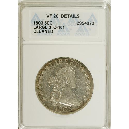 1803 50C Large 3--Cleaned--ANACS. VF20 Details. O-101,