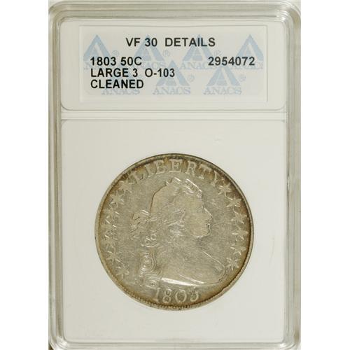 1803 50C Large 3--Cleaned--ANACS. VF30 Details. O-103,
