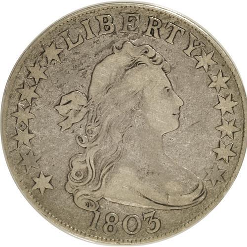 <B>1803 50C Large 3 VF20 ANACS.</B></I> O-101. NGC Census: (77/293). PCGS Population (26/199). Mintage: 188,234. Numismedia Wsl. Price: $360. (#6066)<BR><BR><b>Shipping:</b> Coins & Currency (<a target="_blank" href="http://www.heritageauctions.com/common/shipping.php">view shipping information</a>)
