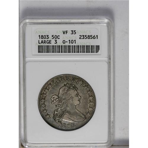 1803 50C Large 3 VF35 ANACS. O-101, R.3. Choice for th
