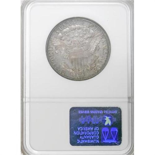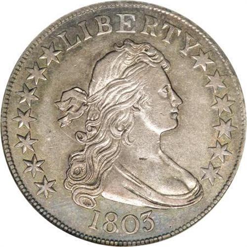 <B>1803 50C Small 3 AU55 NGC.</B></I> O-104, R.3. If not distinguishable by size, the Small 3 1803 halves can be differentiated from their Large 3 counterparts by the lack of a vertical serif on the 3. Of similar scarcity to the Large 3 coins, the Small 3 halves are under stronger collector pressure as they are only represented by a single obverse-reverse die pairing.<BR> This piece was struck from a nearly perfect obverse die. A fine die crack from the border passes through the left arm of the T in LIBERTY to the left base of the same letter. The reverse has a crack through the first S, the clouds below ATE, and up through the E to the final S. Moderate clash marks are seen on both sides.<BR>This is a remarkable example of the Small 3 variety with sharp design details near the centers and slight weakness at the border. Both sides have satiny heather surfaces with lighter gray on the reverse. The toning gradually darkens close to the border.<BR> This piece ranks as the third or fourth finest example of the Small 3 variety.<BR> Haseltine-4; Beistle 1-A; Overton-8; PCGS# 6067; Encyclopedia-4572.<BR><I>Ex: Delaware Valley.<BR>From The Westmoreland County Collection of Early Bust Halves, 1794-1807.</B></I><BR><BR><B>Coin Engraver:</B> Robert Scot<BR><BR><b>Shipping:</b> Coins & Currency (<a target="_blank" href="http://www.heritageauctions.com/common/shipping.php">view shipping information</a>)