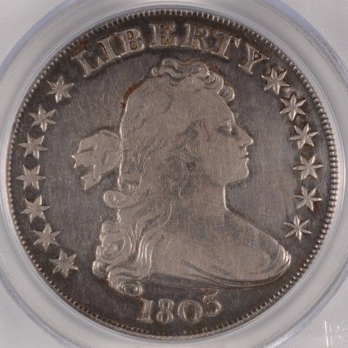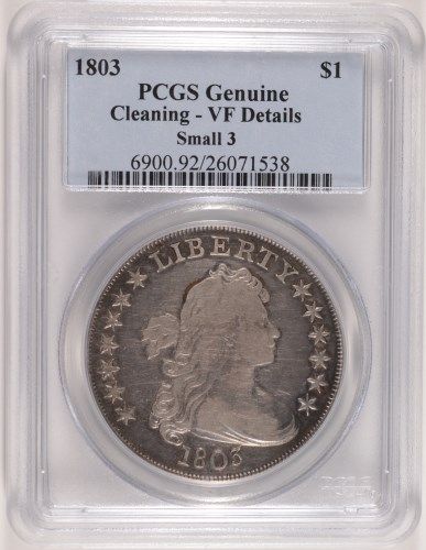1803 BUST DOLLAR PCGS VF, LIGHT CLEANING, NICE COIN!
