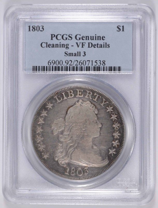 1803 BUST DOLLAR PCGS VF, LIGHT CLEANING, NICE COIN!