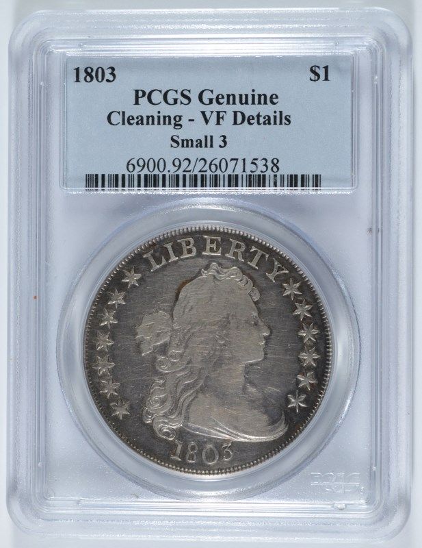 1803 BUST DOLLAR PCGS VF, LIGHT CLEANING, NICE COIN!