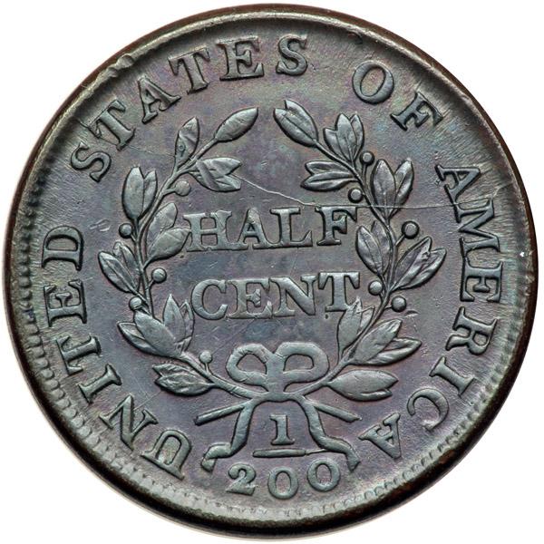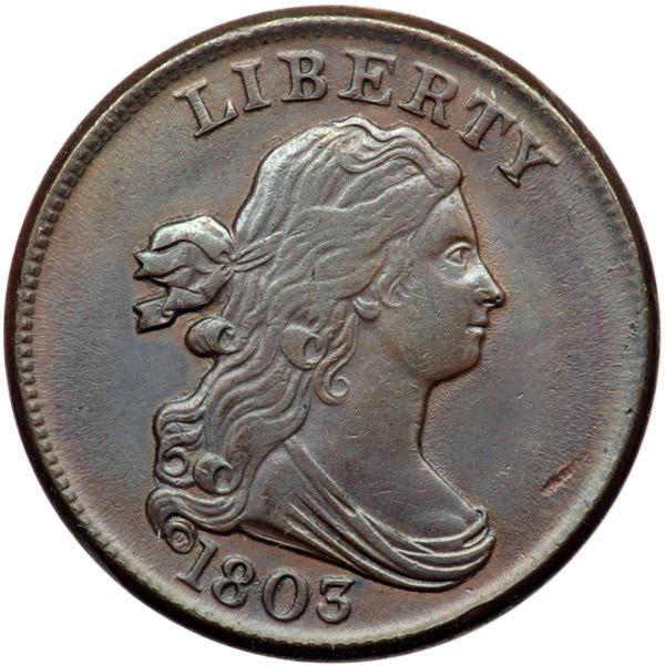 1803 C-1 R1 EF40. Ten points sharper but there is a dull scrape that skips from the rim over the A in STATES through the wreath to the HA in HALF. A dull nick in the field near the rim above the bust tip is the only additional mark. Lightly cleaned, now nicely retoned lustrous dark bluish steel and chocolate. Satiny frost covers the fields and protected areas. LDS, Manley state 3.0. An additional die crack now reaches from the earlier crack above the L in HALF down through that letter to the N in UNITED and dentils above. Davy #03.1.1.