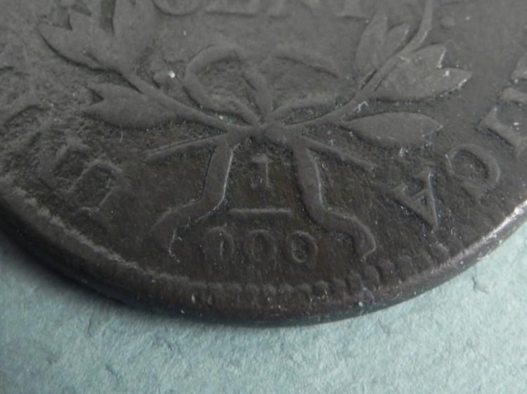 1903 Draped Bust One Cent Coin with Corrected Fraction * * Description: The U.S. Mint produced this coin with an error on the fraction, which was stamped "1/000". In this version, the coin was restamped with a number 1 over the first 0, and thus became known as a "Corrected Fraction." * Rarity: Considered Scarce * Reference: Red Book