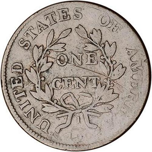 Slightly sharper but there is a pinscratch through the O in ONE to the bottom of the R in AMERICA. Otherwise there are only light nicks scattered about the obverse. Glossy reddish brown and chocolate. MDS, Breen state II. The date is bold and the legends are clear.<p><i>Mike Iatesta.</i>
