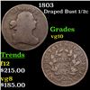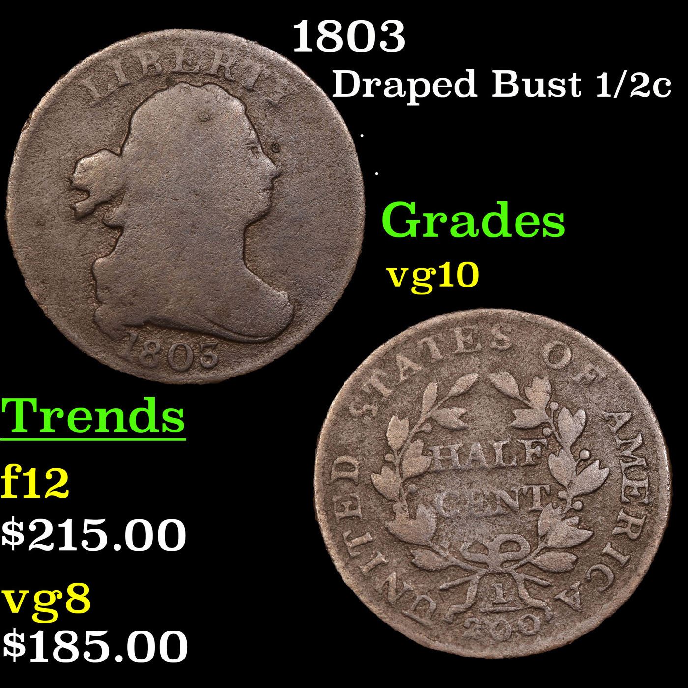 1803 Draped Bust Half Cent 1/2c Grades vg+.