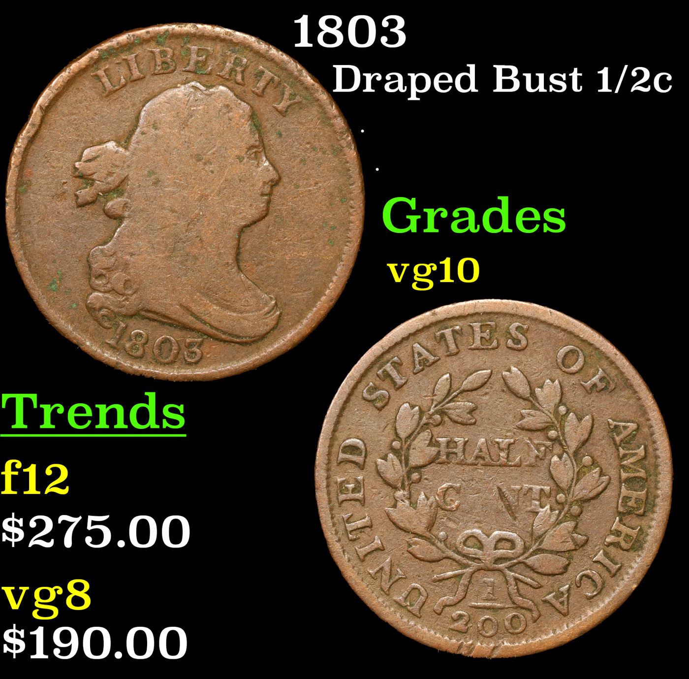 1803 Draped Bust Half Cent 1/2c Grades vg+.