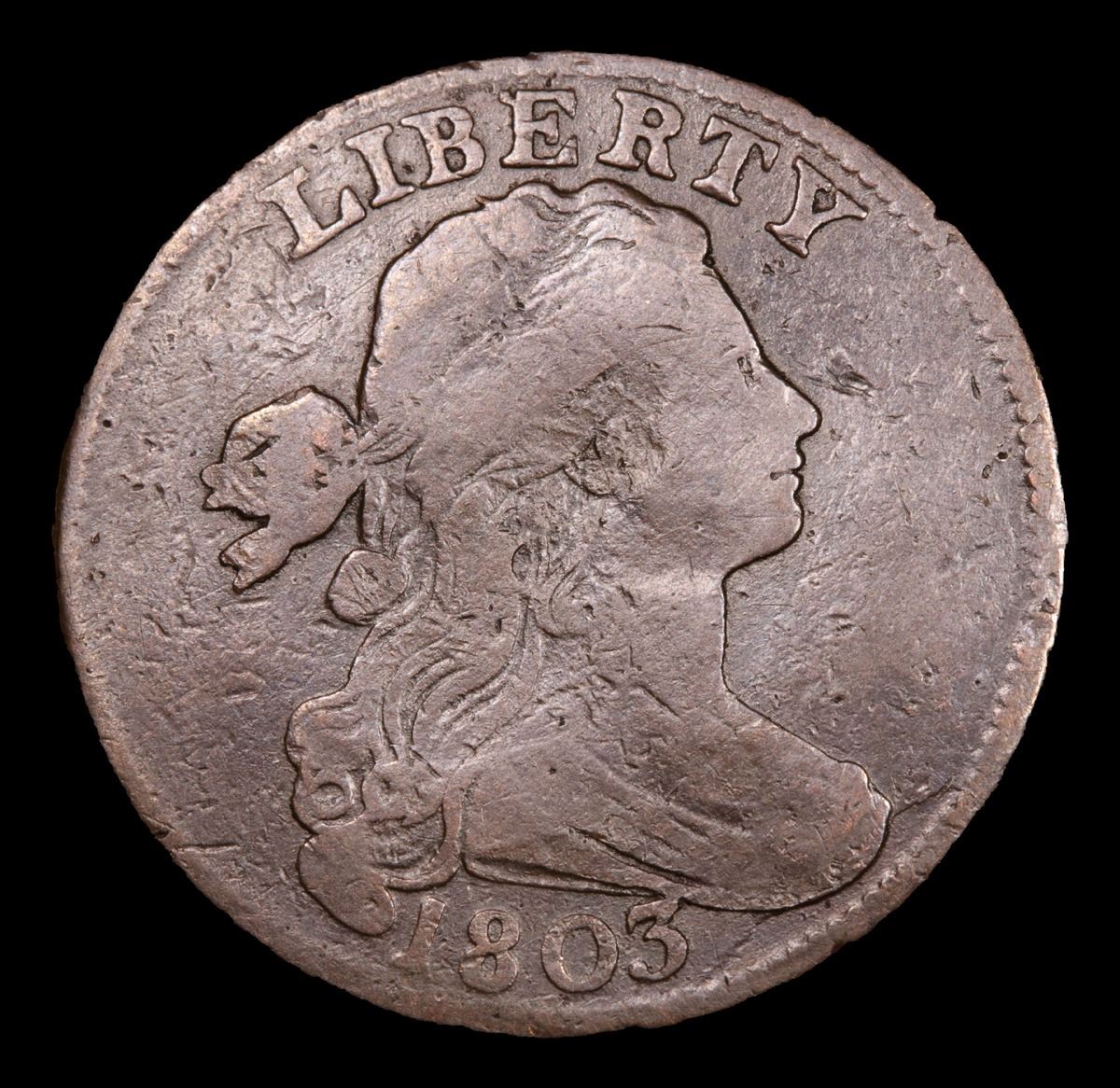 1803 Lg Date, Lg Fraction . Draped Bust Large Cent 1c Grades f+.