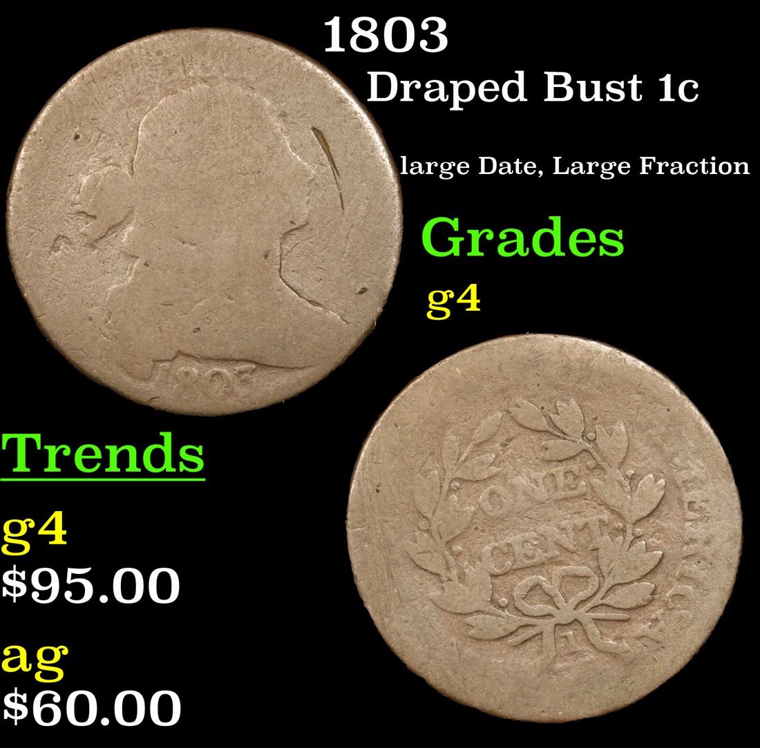 1803 large Date, Large Fraction . Draped Bust Large Cent 1c Grades g, good.