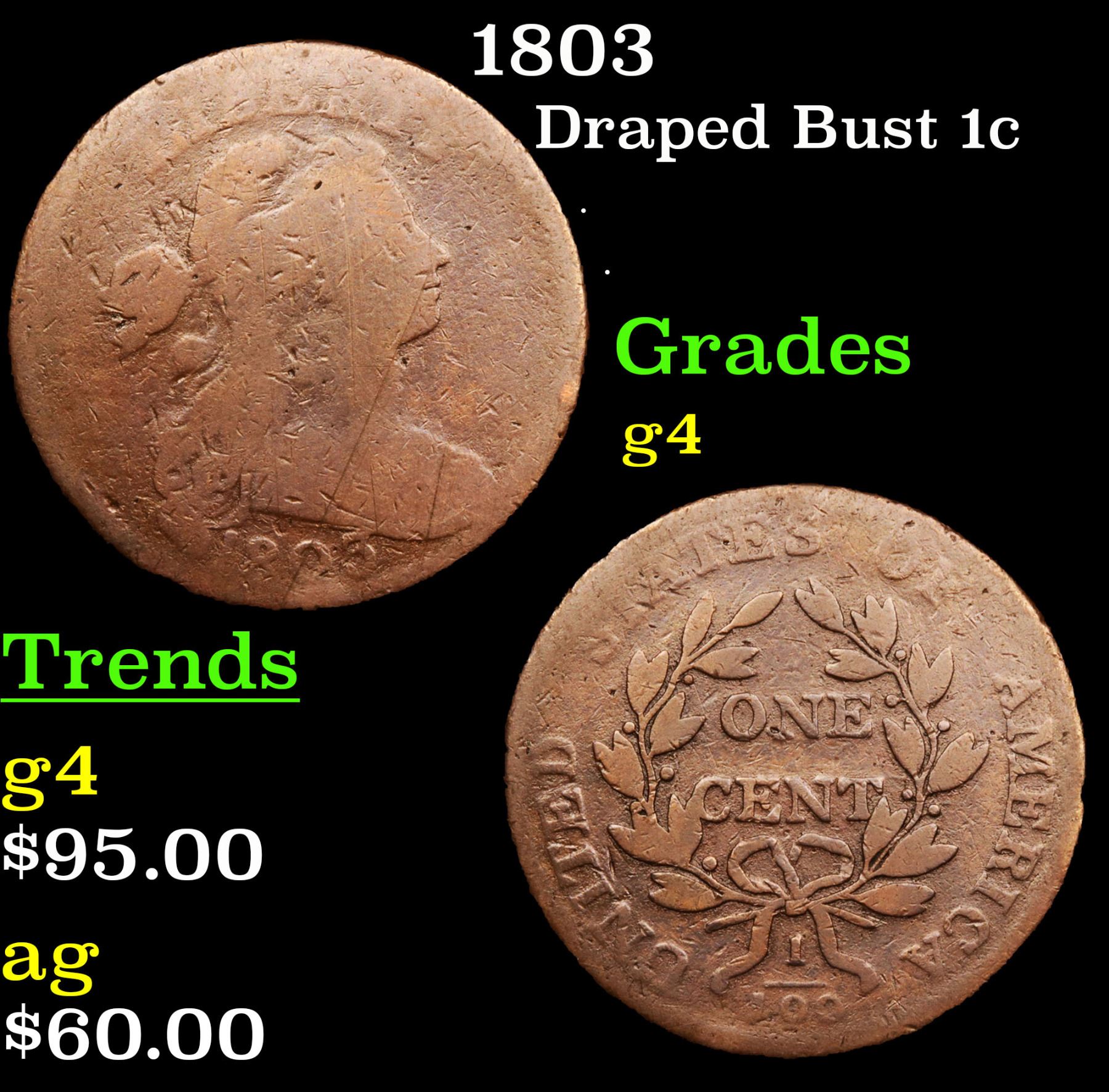 1803 Draped Bust Large Cent 1c Grades g, good.