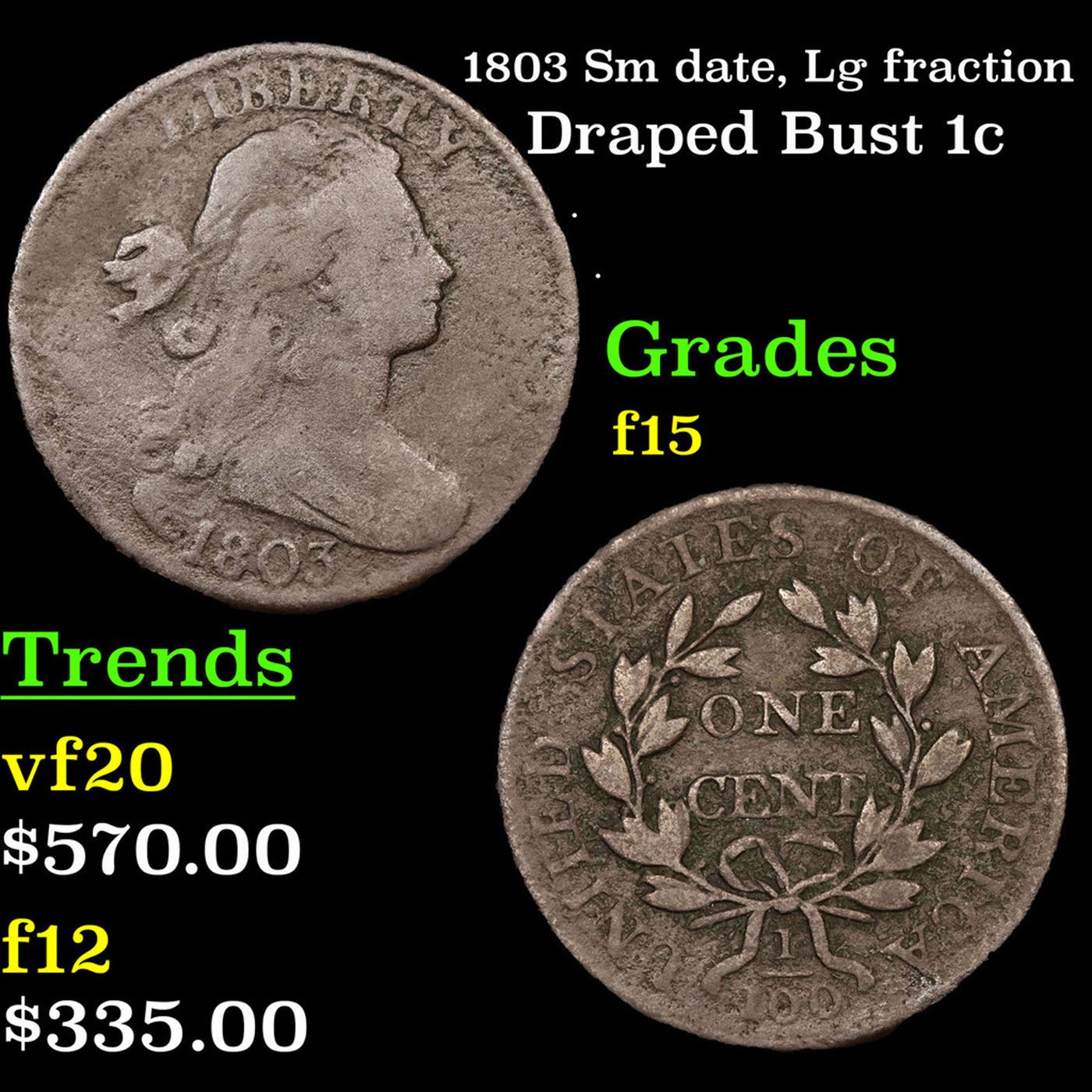 1803 Draped Bust Large Cent Sm date, Lg fraction 1c Grades f+
