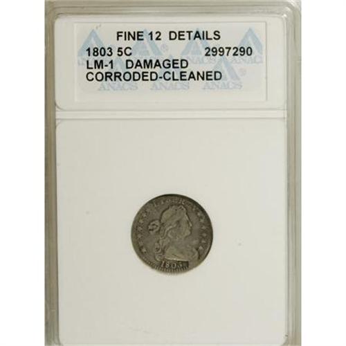 <B>1803 H10C Large 8--Cleaned, Corroded, Damaged--ANACS. Fine 12 Details. </B></I>LM-1.<B> </B></I>NGC Census: (0/31). PCGS Population (5/74). Mintage: 37,850. Numismedia Wsl. Price for NGC/PCGS coin in F12: $1,275. (#4269)<BR><BR><B>Coin Engraver:</B> Robert Scot<BR><BR><b>Shipping:</b> Coins & Currency (<a target="_blank" href="http://www.heritageauctions.com/common/shipping.php">view shipping information</a>)