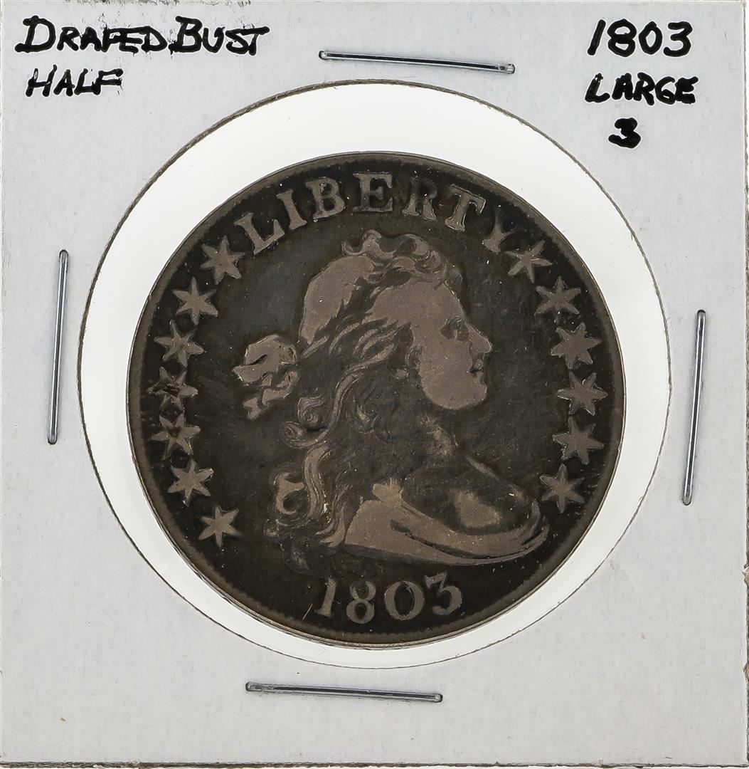 One 1803 Large 3 Draped Bust Half Dollar Silver Coin.