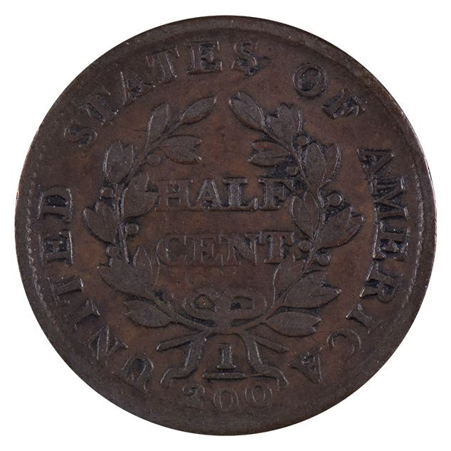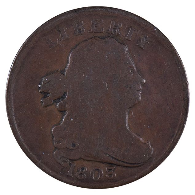 One 1803 Liberty Draped Bust Half Cent Coin.
