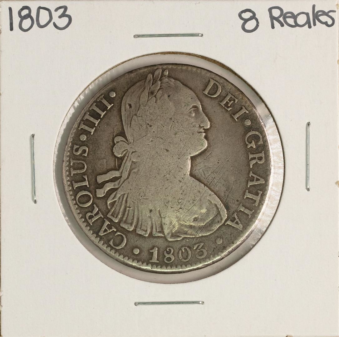 One 1803 Mexico Carlous IIII 8 Reales Silver Coin.