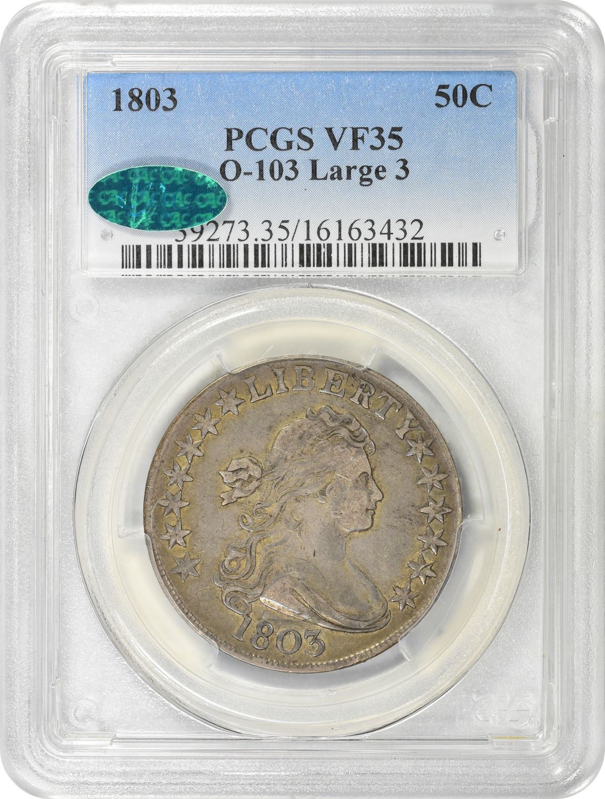 The pleasing and visually mark-free surfaces of this deep golden-gray specimen offer a few tiny obverse marks under a loupe; circulation was kinder to the reverse. Bold design elements represent the grade and type to the proverbial “T” on this attractive early half dollar. Suitable to a mid-grade type set assembled with an eye toward quality. PCGS #39273