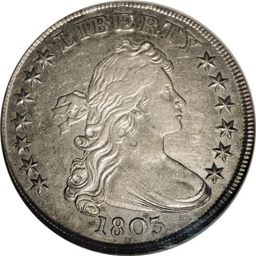 1803 S$1 Large 3 AU53 NGC. B-6, BB-255, R.2. Swirls of