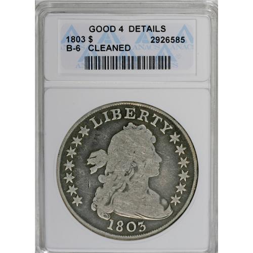 1803 S$1 Large 3--Cleaned--ANACS. Good 4 Details. B-6,