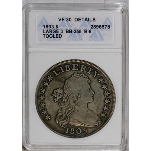 1803 S$1 Large 3--Tooled--ANACS. VF30 Details. B-6, BB