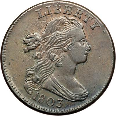 1803 S-250 R2. VF-35. Attractive glossy chocolate and light olive brown with some lighter brown toning in protected areas. The only marks are a splash of darker olive brown toning at the bust tip and a small spot of very fine verdigris at the dentils over the D in UNITED. MDS. The dies are showing some weakness from wear during use, and the dentils on the reverse are incomplete. Excellent eye appeal for the grade. DWH #3205.