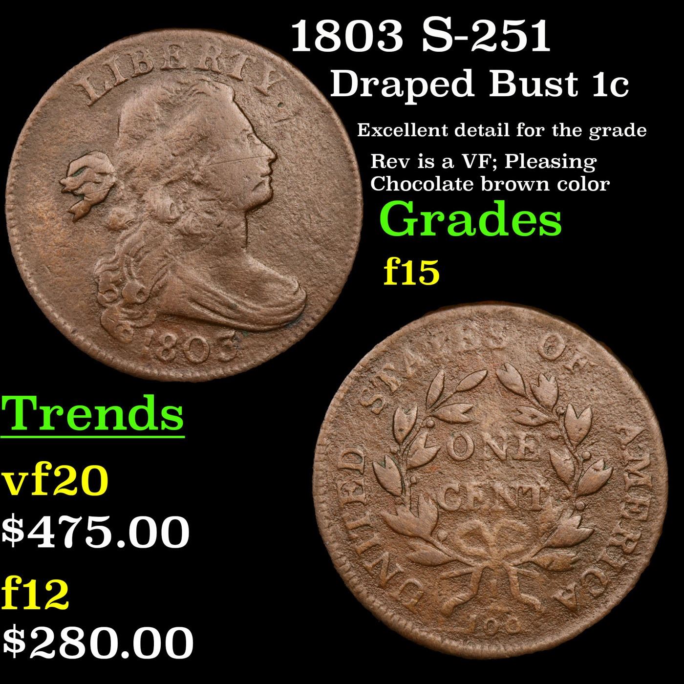 1803 S-251 Draped Bust Large Cent 1c Grades f+.