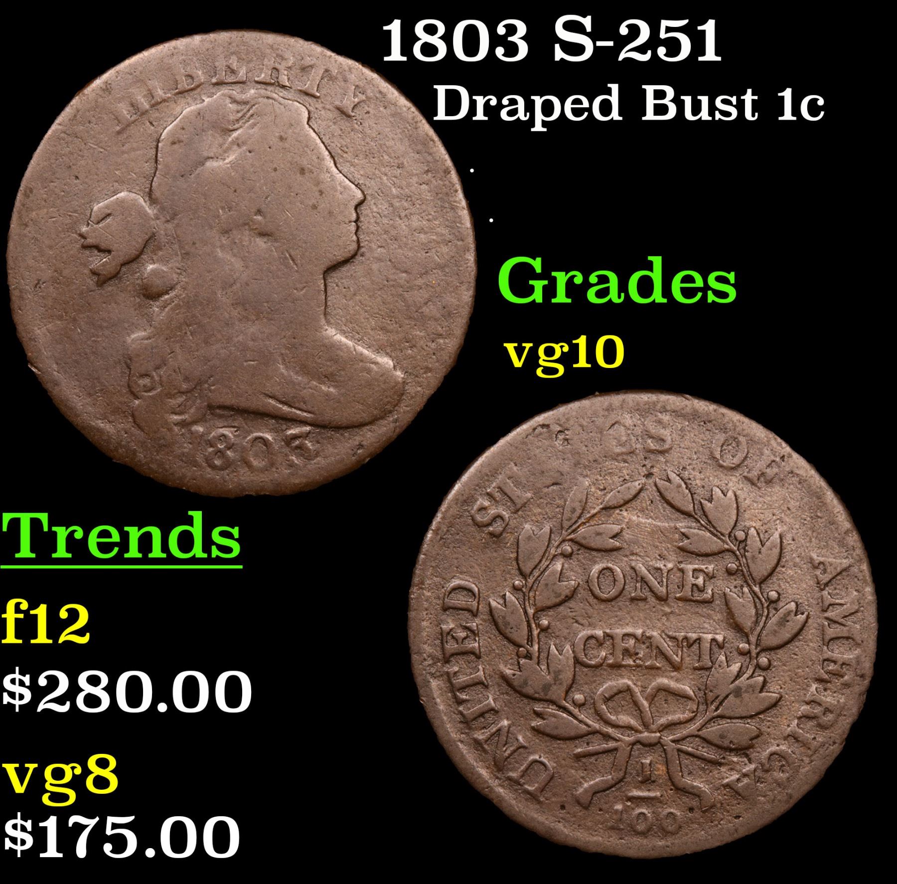 1803 S-251 Draped Bust Large Cent 1c Grades vg+.