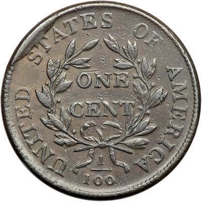 1803 S-255 R1. VF-25 Plus. Ten points sharper with far too many tiny nicks for the sharpness grade. LDS, Breen state IV, with a strong cud break at STA that connects the tops of ST to the rim above. A dull but strong point hangs down from the base of the B in LIBERTY directly under the upright. This point is added late in the marriage and is present on all examples seen with the reverse cud, but your cataloger has never seen this point on an example that did not have the reverse cud. DWH #3091.