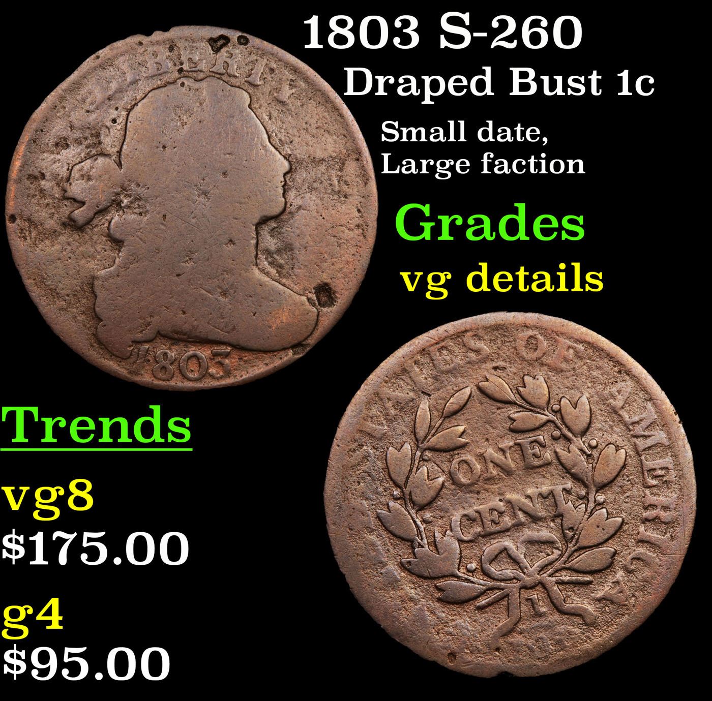 1803 S-260 Draped Bust Large Cent 1c Grades vg details.