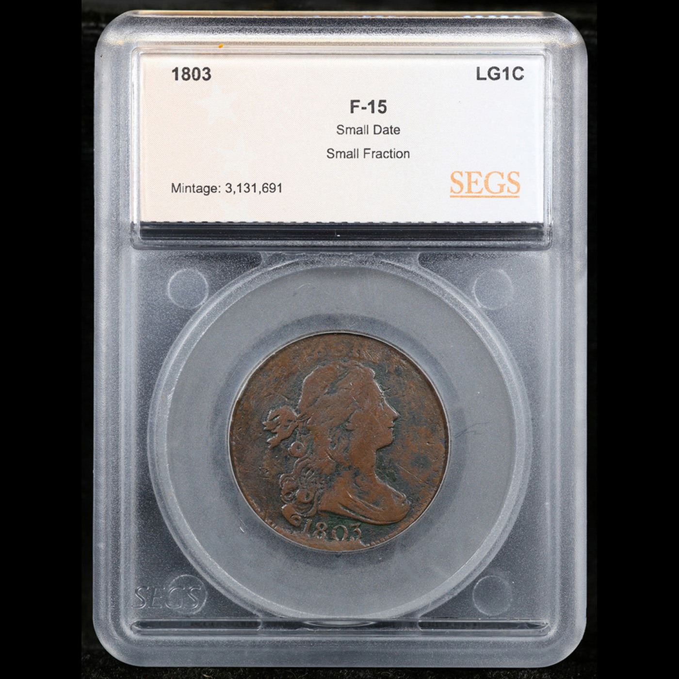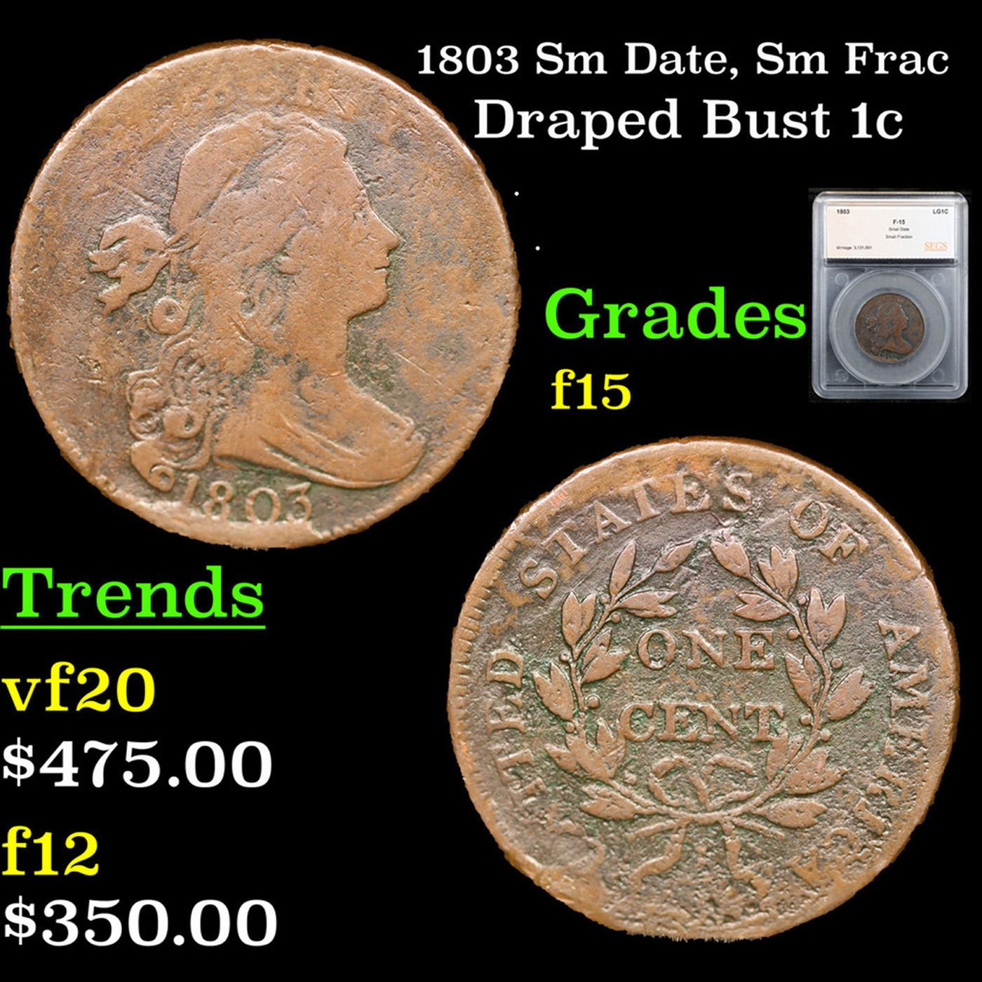 1803 Sm Date, Sm Frac Draped Bust Large Cent 1c Graded f15 By SEGS.