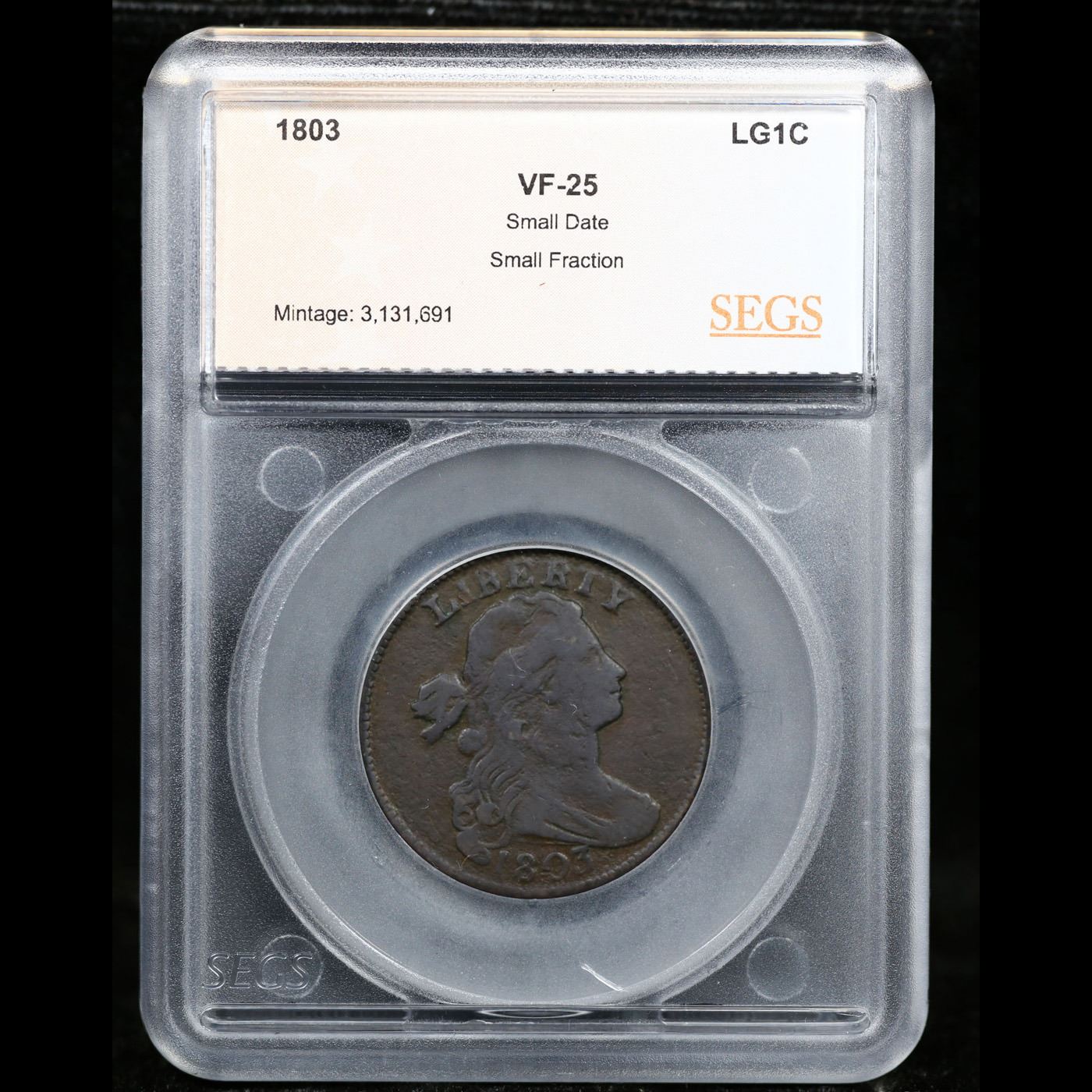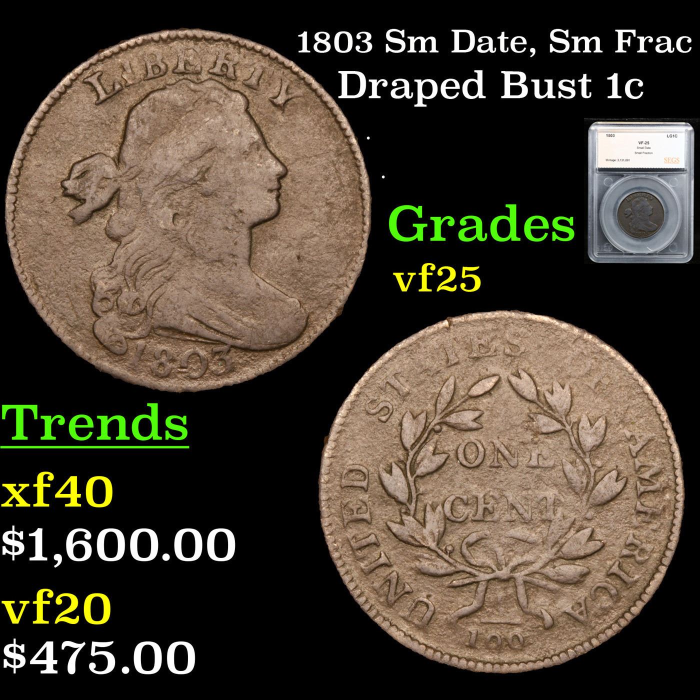 1803 Sm Date, Sm Frac Draped Bust Large Cent 1c Graded vf25 By SEGS.