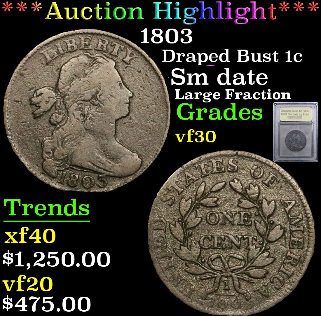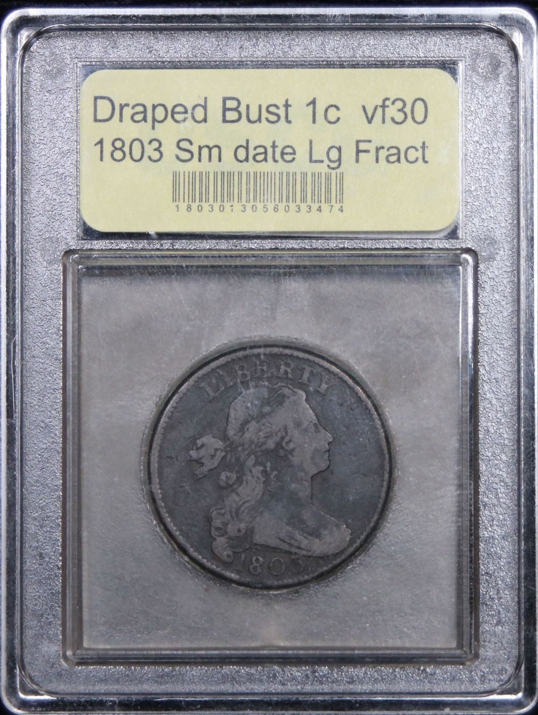 1803 Sm date Lg Fraction . . Draped Bust Large Cent 1c Graded vf++ by USCG.