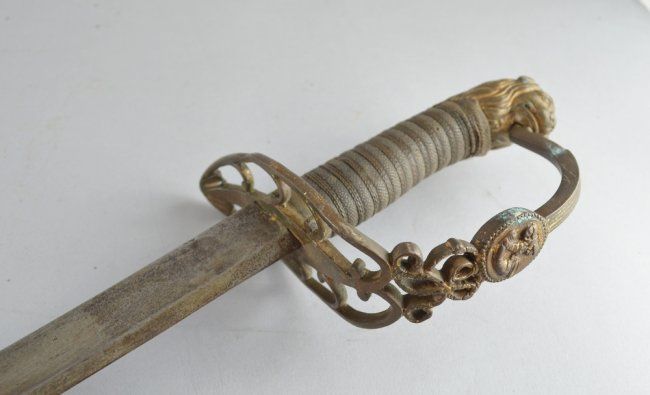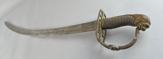 1803 pattern sword with horn and ribbon motif and GR curved blade, shagreen grip, 37" overall