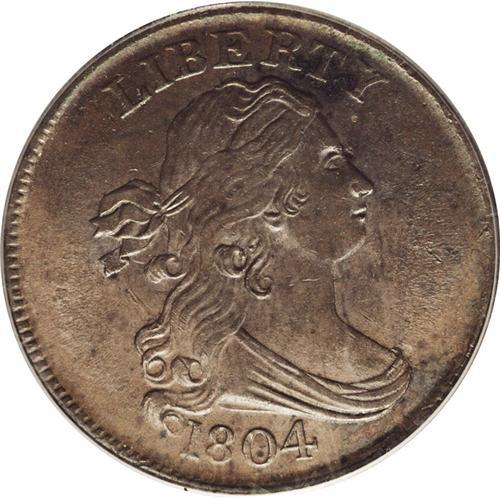 <B>1804 1/2 C Crosslet 4, No Stems MS63 Brown PCGS.</B></I> C-12, B-11, R.2. The No Stems reverse die is known with Plain 4 and Crosslet 4 obverse dies. The Plain 4 obverse (identified as C-13), is often encountered in Mint State grades, while this Crosslet 4, No Stems variety is much scarcer in high grades. This piece has glossy brown surfaces with excellent cartwheel luster. The obverse has a crescent of light brown with considerable darker brown color above, as well as a few small splashes of ebony. The reverse is fully light brown with hints of olive. EAC 50.<BR><BR><b>Shipping:</b> Coin/Currency (<a target="_blank" href="http://www.heritageauctions.com/common/shipping.php">view shipping information</a>)