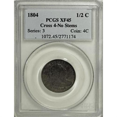 1804 1/2 C Crosslet 4, No Stems XF45 PCGS