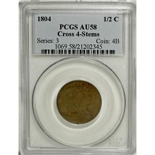 1804 1/2 C Crosslet 4, Stems AU58 PCGS