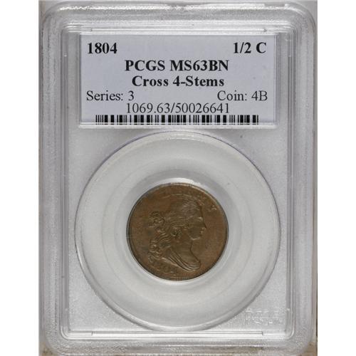 1804 1/2 C Crosslet 4, Stems MS63 Brown PCGS. C-10, B-