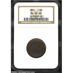 1804 1/2 C Plain 4, No Stems MS62 Brown NGC. B-10, C-13, R.1. One of the more common Draped Bust Hal