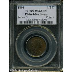 1804 1/2 C Plain 4, No Stems MS62 Brown PCGS. B-10 1804 1/2 C Plain 4, No Stems MS62 Brown PCGS.